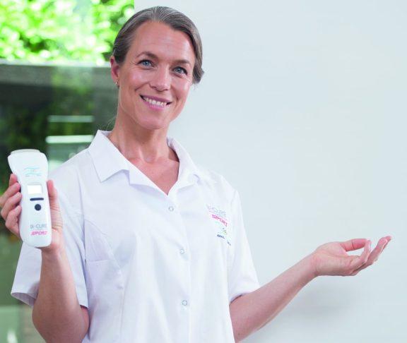 Oral mukosit och strålningsdermatit är biverkningar av cancerbehandlingar, som enligt en nyligen genomförd studie kan behandlas effektivt av patienten själv med B-Cure medicinska laser. Enheten är designad för att vara extremt enkel att använda och så säker att du inte ens behöver använda skyddsglasögon under behandlingen. B-Cure-lasern fungerar effektivt på hud och i vävnad på djup upp till 6 cm utan att orsaka en termisk reaktion. Laserenhetens effekt beror på dioden som producerar laserstrålen, strålens våglängd, pulslängd och frekvens. Med att optimera dessa har B-Cure Laser skapats; En kraftfull, medicinteknisk godkänd (MDD) laserapparat med säkerhetsklass 1, som kan överlämnas till patienten för personligt bruk på avdelningen eller hemma.